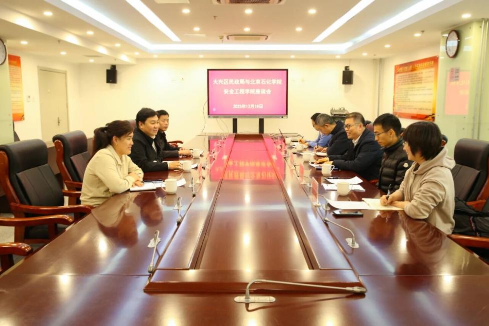 为深化党建与业务工作深度融合,充分发挥学科专业优势,助力属地筑牢安全应急保障防线,2025年12月18日,安全工程学院赴大兴区民政局开展调研座谈。大兴区民政局党组成员、四级调研员郑阳,安全负责人何福星及一线安全检查人员,我校安全工程学院党委副书记刘化龙、副院长吕鹏飞、安全工程系主任杨凯、研究生支部书记宋冰雪、孟倩倩老师参加座谈。