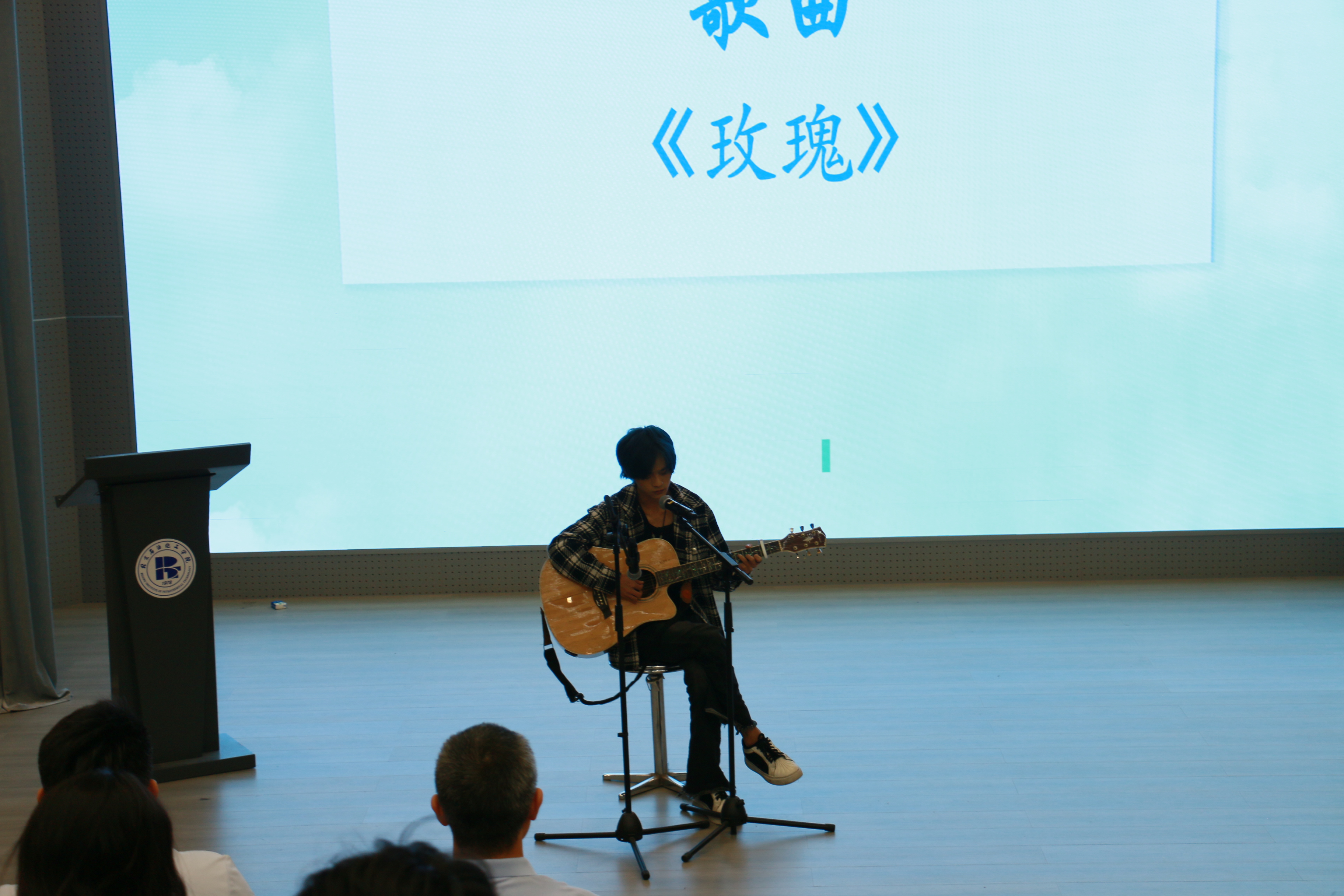 2022级研究生邹奇峰演唱歌曲《突然的自我》、2023级研究生张严严演唱歌曲《玫瑰》,用优美的旋律致敬逐梦岁月。