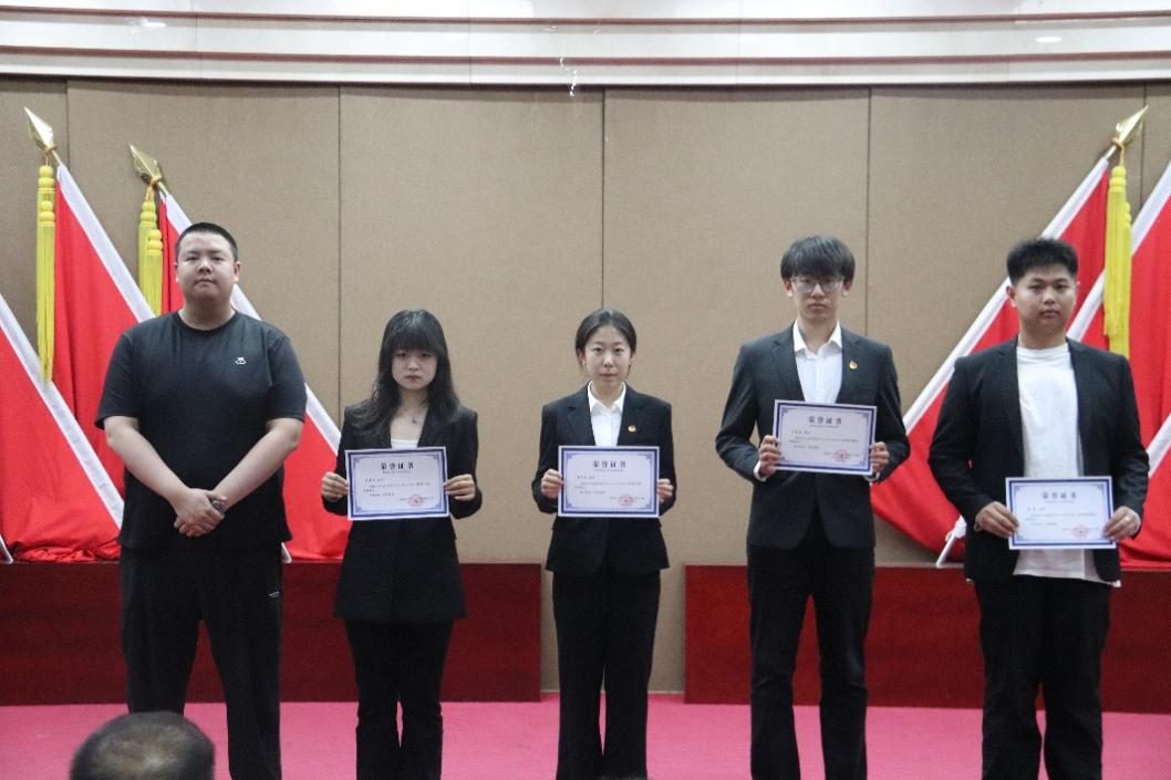 团委书记郑鹏宇致大会开幕辞,他回顾了即将过去的一学年学院在人才培养、学风建设、文体活动和社会实践等方面取得的丰硕成果,勉励同学们要以榜样为镜,志存高远、脚踏实地、卓越奋进,在青春的赛道上奋力奔跑。他宣读了受表彰本科生名单,共57名同学在学业、文体、学生工作、社会实践等方面表现突出受到表彰。学院为受表彰的学生代表颁发了荣誉证书。