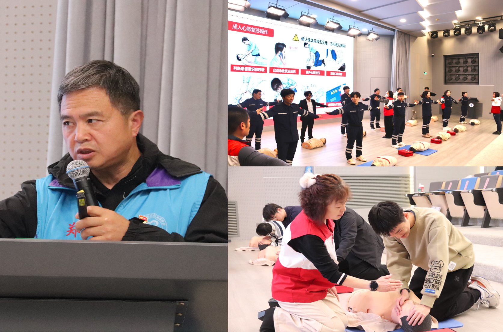 成立大会后,北京市应急志愿服务总队宣教支队郑军教官为参会师生做了“如何做一名合格的志愿者”的报告,北京市红十字会专业教练开展了第一次安全应急专题培训,并指导参训人员考取救护技能证。