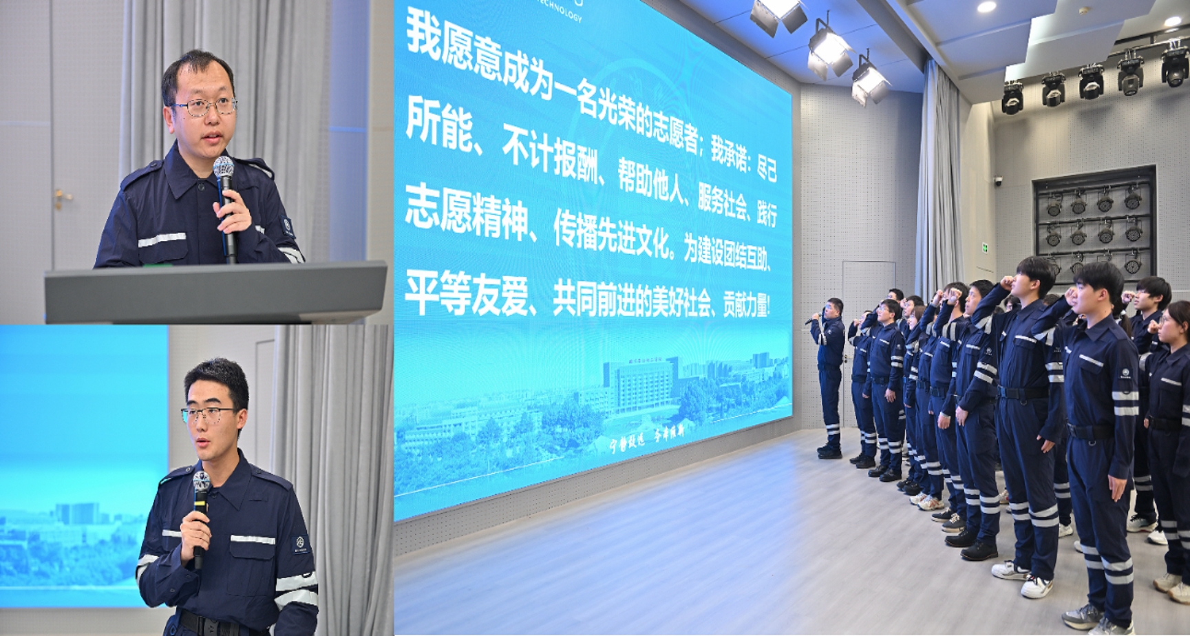 张人友老师和宋浩然同学代表安全应急青年志愿服务队发言,表示将牢记使命与嘱托,践行志愿服务精神,以“宁静志远,务本维新”的人生态度,秉承北石化“安全人”的精神风貌与职业操守,发挥好安全应急志愿者的专业服务能力和辐射带动作用,为首都安全应急事业奉献力量,以青春之“我”回应“强国有我”的时代强音。