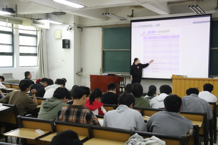 刘琪老师针对选课环节进行了全面细致的讲解。她解读了个人选课的流程和总体要求,并就退课相关要求进行说明,使同学们对选课目标和方法有了清晰认知,助力同学们合理选课、科学选课,进一步提升学习成绩。