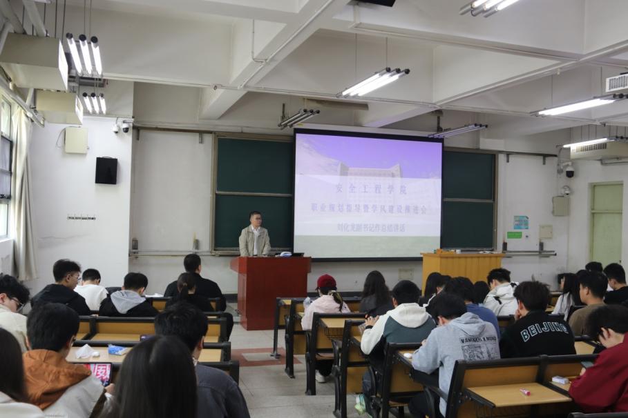 为助力大一学子明晰未来方向,筑牢学风根基,4月11日上午,安全工程学院召开职业规划指导暨学风建设推进会。学院党委副书记兼副院长刘化龙、教学秘书刘琪、辅导员包御风、郑鹏宇、学生代表石梦瑶及全体大一学生参会。会议由包御风主持。