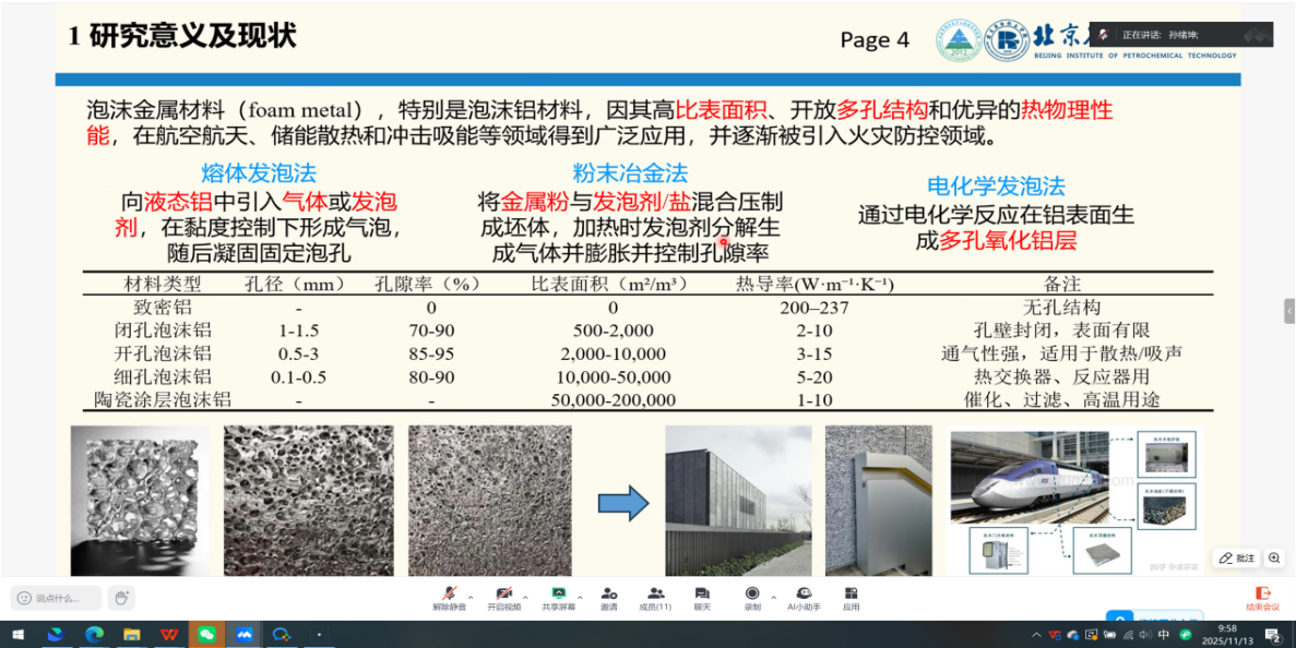 白文轩博士聚焦我国“双碳”目标下天然气开发的关键难题,针对海上平台等紧凑空间内高含CO₂天然气脱碳效率低、设备占地大等痛点问题提出自己的解决思路与技术方案。孙绪坤博士直击城市防火防爆核心需求,针对火灾蔓延防控的技术瓶颈,计划采用多尺度研究方法,深入剖析泡沫金属孔隙结构对火焰蔓延速度、热释放速率的定量调控机制。