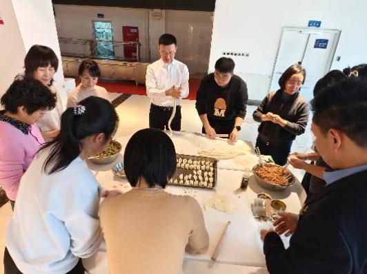 讲话结束后,包饺子活动正式拉开帷幕。食堂四楼变成了欢乐的“厨房”,老师们纷纷挽起袖子,齐动手包饺子。和面、擀皮、调馅、包制,大家分工协作,配合默契。在欢声笑语中,一个个形态各异、饱含心意的饺子诞生了。有的饺子小巧精致,有的则略显“豪放”,但每一份都蕴含着浓浓的情谊。