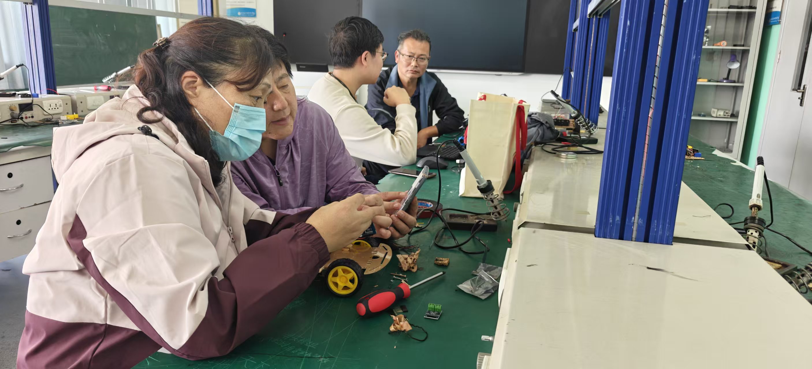 2025年10月12日上午9点整,首都职工教育培训示范点特色教育培训项目“WIFI智能车的设计与实践”培训班在北京石油化工学院创源工程实训中心如期举行。本次培训班共招收学员35人。