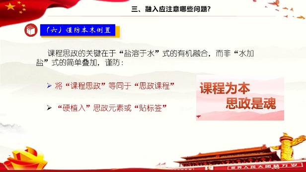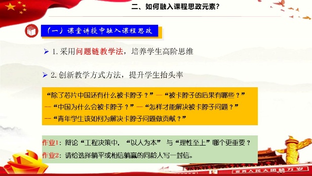 冷老师围绕课程“宜融入哪些课程思政元素、如何融入思政元素以及融入过程中应注意哪些问题”进行了分享。其中,冷老师在日常教学中倡导的“一堂课要有掌声、笑声和回声”,让在座的老师们印象深刻。