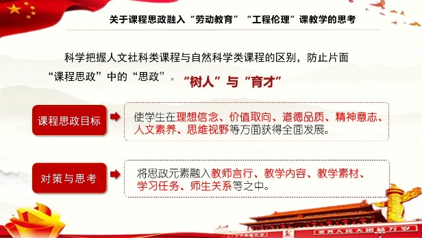 为进一步落实好教育部颁布的《高等学校课程思政建设指导纲要》,扎实有效推进“工程伦理”和“大学生劳动教育”的课程建设,发挥党建引领事业发展的关键桥梁作用,促进学院主干课程教育教学水平不断迈上新台阶。1月20日上午,工程师学院直属党支部举办开年第一场“党建引领 思政先行”主题党日活动,活动邀请马克思主义学院冷文勇副教授做《关于课程思政融入“劳动教育”“工程伦理”课教学的思考》主题报告,工程师学院所有在校教师参加,马克思主义学院直属党支部书记刘颖全程参加。