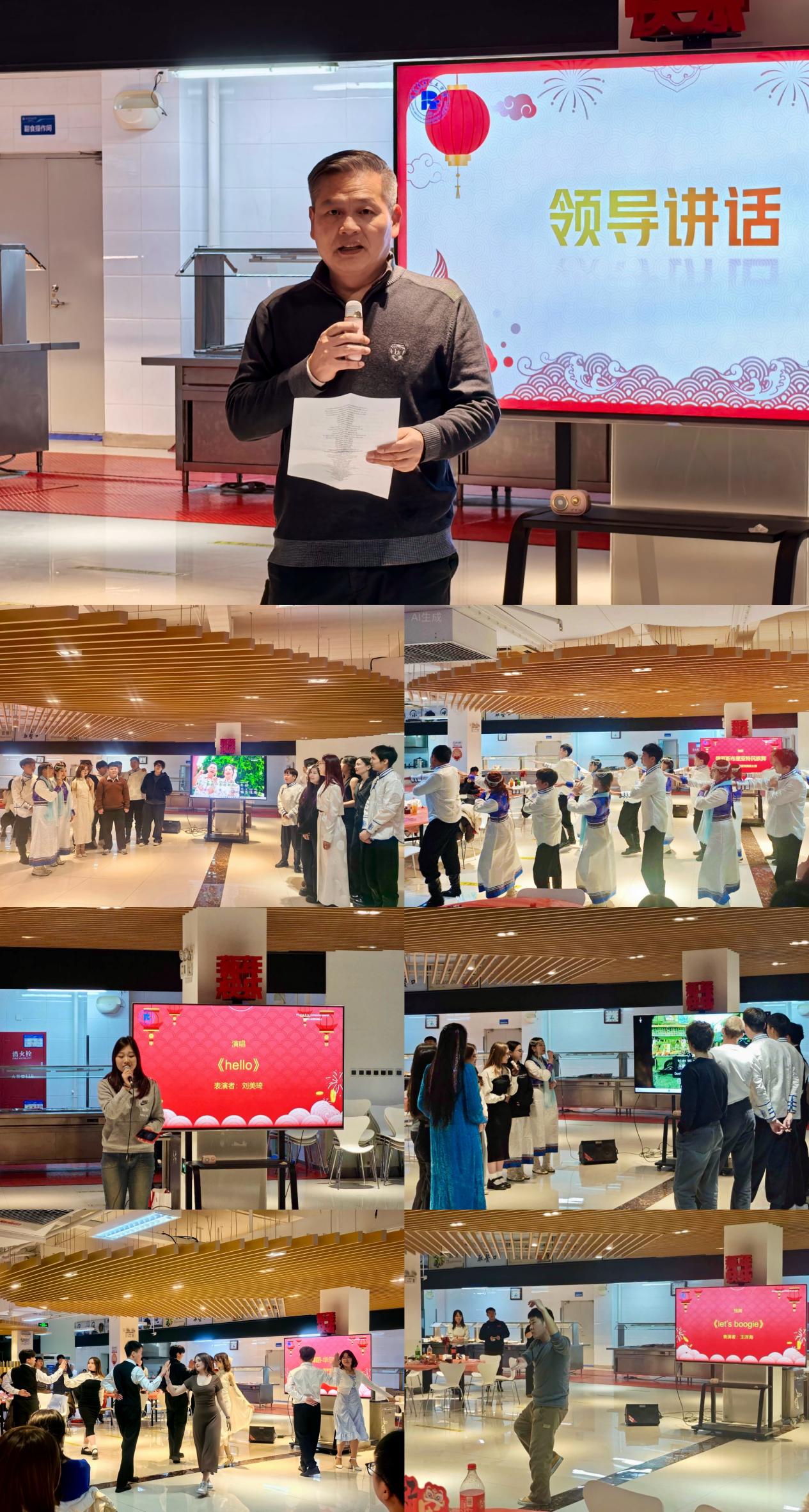 文艺表演如同一幅多彩的文化画卷徐徐展开。俄罗斯布里亚特民族的留学生们献上特色民族舞,铿锵的舞步和独特的韵律仿佛将观众带到了辽阔的贝加尔湖畔。中国学生刘美琦的歌曲演唱《hello》以温柔的旋律串联起不同语言的心灵,而汉语初级二班学子集体演绎的《对面的女孩看过来》则唤起了全场观众的青春共鸣。随着王洋海同学动感十足的即兴舞蹈《let's boogie》登场,晚会气氛被推向高潮,灵动的舞步展现了青春的活力与朝气。同学们在联欢会中还进行了抽奖、玩猜字游戏。最后,一曲优美的华尔兹缓缓上演,轻盈旋律与优雅姿态交织,恰似中外学子跨越山海的绵长情谊,尽显文化交融之韵。师生们在欢乐中迎接了一个喜庆的新年。