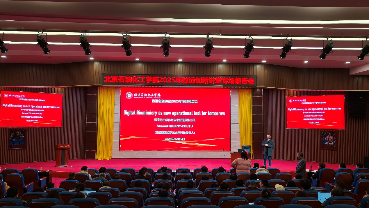 12月5日,法国亚眠拉萨尔大学科研负责人Arnaud DUJANY-COUTU博士做客我校致远创新讲堂,为我校近200名教师、研究生做了一场题目为“数字仿生学作为未来新的操作工具”的英语学术讲座。国际合作与交流处黄建平处长主持讲座。