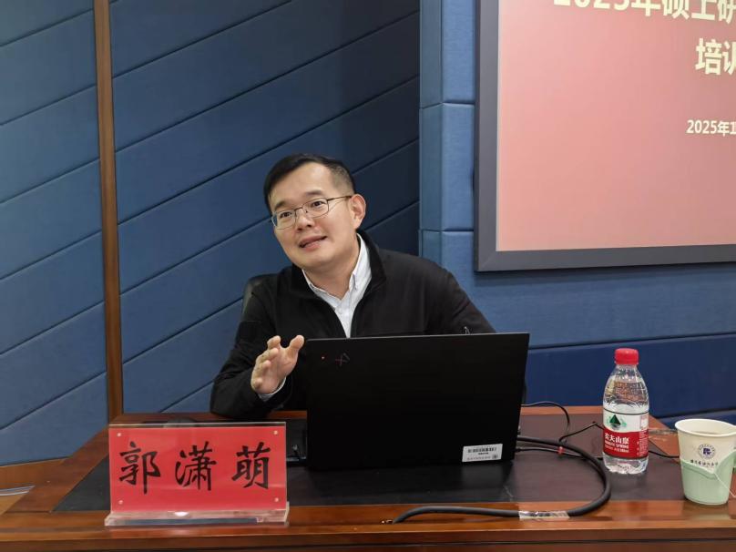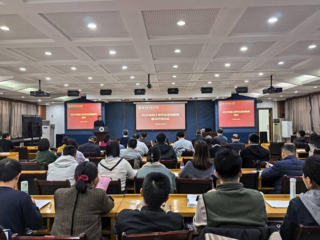 在全校上下深入学习二十届四中全会精神、全面贯彻习近平总书记关于教育的重要论述和全国教育大会精神之际,学校于11月5日-6日举办2025年硕士研究生指导教师培训,强化导师立德树人根本任务,提升研究生培养核心质量。2025年新聘校内硕士研究生指导教师以及各学院分管研究生副院长、学科带头人、学科方向带头人、研秘、学科秘书、研究生处全体教师参加了培训活动。本次培训采取专题报告、政策解读以及线上培训相结合的方式进行。培训会由研究生工作部(处)部(处)长、学科建设办公室主任陈飞主持。