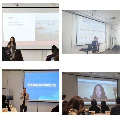 在专家分享环节,来自ACCA的行业代表与资深会员,从企业实践出发,为学生带来了具有前瞻性的行业洞察。其中,ACCA华北区商务关系经理Belinda围绕企业出海的挑战与机遇,系统解析了企业国际化过程中面临的关键问题;ACCA资深会员张胜利则从AI技术出发,深入探讨财税工作的演进路径与能力升级方向;特邀职业导师Daniel从企业级财务AI解决方案出发,结合实际应用场景,展示了AI如何在企业财务管理、数据分析与决策支持中发挥价值;Jianan则从涉外律师的实务角度,围绕企业架构设计、合规风险与跨境运营逻辑,指导学生理解如何构建更加完整、可落地的出海方案。