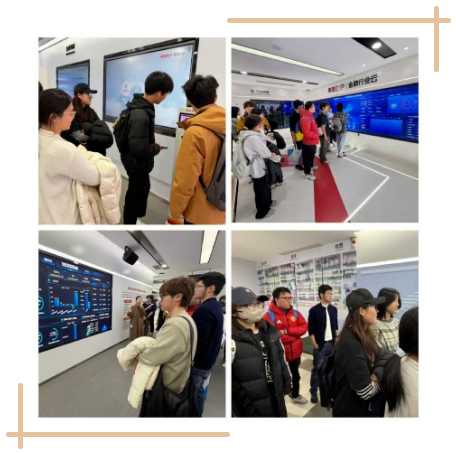 活动伊始,师生一行先后参观了用友产业园现代化园区及数智企业体验馆。从精智工业互联网平台到用友BIP(商业创新平台),从智能财务解决方案到数字人力管理系统,一系列前沿云服务与技术应用全景呈现了企业数智化转型的全流程。通过场景化模拟演示、实时数据可视化大屏及互动体验装置,同学们直观领略了云计算、大数据、人工智能等新技术如何重构企业财务管理、商业运营模式,让课堂上抽象的“数智化”概念转化为可触可感的实践案例。ACCA学子们全程专注记录,不时围绕技术应用细节与工作人员深入交流,对行业技术迭代速度与企业创新实践有了更真切的认知。