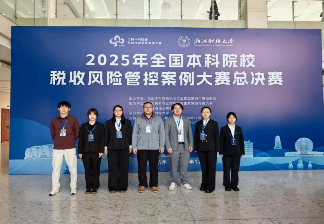 12月,全国本科院校税收风险管控案例大赛全国总决赛在浙江财经大学落幕。在王永哲、徐岭、刘一涛等老师的精心指导下,我校两支参赛团队延续分区赛良好势头,紧扣赛题运用前沿税收理论与专业分析工具,深度剖析复杂商业场景涉税风险,设计出合规严谨、兼具创新与实操价值的风险管控方案;汇报答辩环节,队员们思路清晰、从容作答,尽显专业素养与团队风采。最终两支队伍双双斩获全国总决赛三等奖。