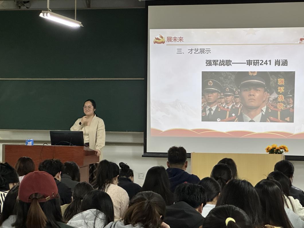 互动环节,通过“正话反说”等小活动,不仅锻炼了同学们的反应力和表达力,还进一步加深了同学们之间的互相协作与沟通。才艺展示环节中,审研25级王婧同学深情朗诵《铭记前行》,审研24级肖涵同学高歌《强军战歌》,以青春之声致敬历史、礼赞和平,充分展现了经管学子昂扬向上的精神风貌。