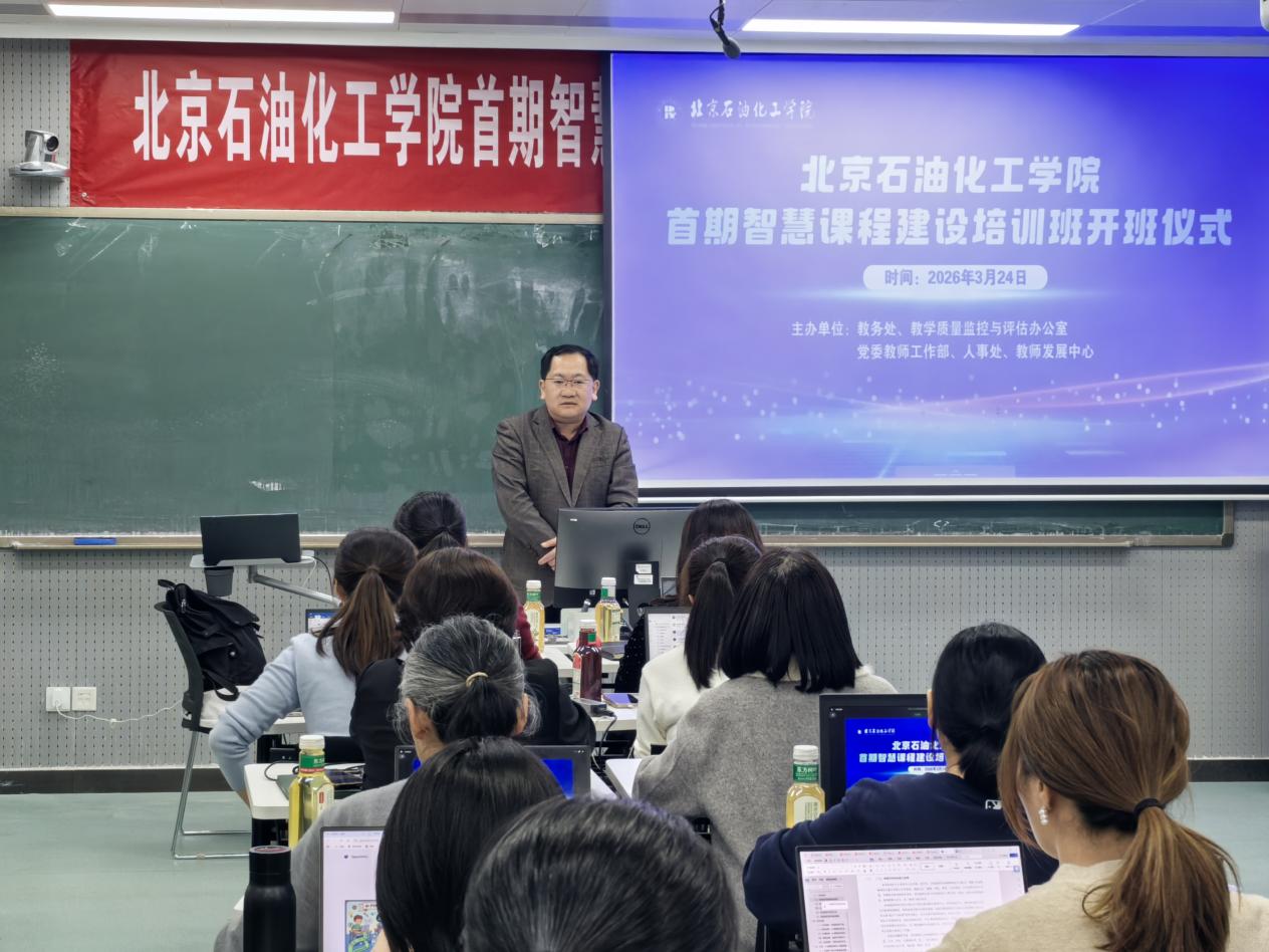 3月24日下午,北京石油化工学院首期智慧课程建设培训班在清源校区教学楼406正式开班。2025年“智慧课程”教改专项立项项目负责人、核心成员参加开班仪式。仪式由教务处处长王腾主持。