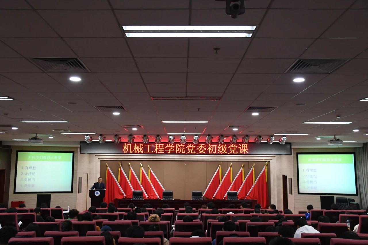 为深入学习贯彻落实党的二十大精神、党的二十届三中全会精神,进一步落实立德树人根本任务,加强对入党积极分子的培养教育。10月17日18点,机械工程学院党委在综合实验楼第二报告厅开展新生初级党课培训。机械工程学院党委书记张超担任主讲,党委副书记刘颖主持。