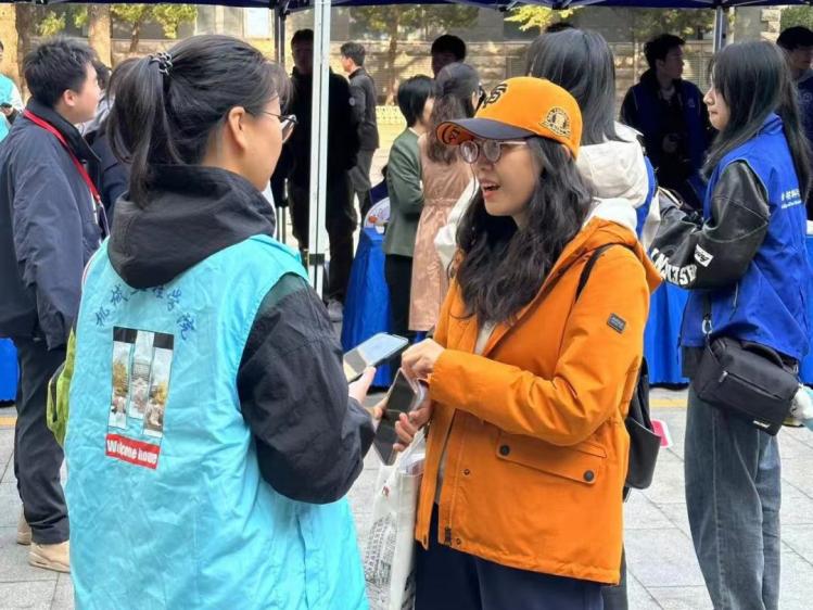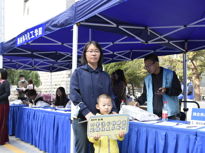 在志愿者的带领下,校友们来到校友接待处登记,领取校友礼包、专属明信片,并在打卡点拍照。