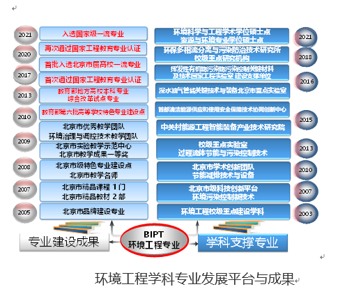 环境工程系隶属于机械工程学院,成立于2001年,并于同年招收第一届环境工程专业本科生,经过20多年的建设和发展,形成了“兼顾常规环境工程专业共性培养、突出环保设备特色”的专业办学特色。2003年,学校以环境工程为主干专业承建了北京市“环保与资源综合利用人才培养和产学研基地”。2005年成为北京市高等学校品牌建设专业,2008年成为北京市级特色专业建设点,2009年“一般本科院校环境工程专业应用型人才培养体系的研究与实践”荣获北京市高等教育教学成果一等奖,同年环境工程教学与实验中心入选北京市实验教学示范中心,并于2014年通过北京市教委组织的专家验收。2010年环境工程专业入选教育部第六批高等学校特色专业建设点。2013年入选教育部地方高校本科专业综合改革试点专业。2017年环境工程专业通过国家工程教育专业认证,进入全球高等工程教育“第一方阵”,同年入选北京市属高校首批重点建设一流专业,也是目前公布的北京市属高校50个重点建设一流专业中唯一一个环境类重点建设一流专业。2019年成为中国生态环境产教联盟会员单位。2020年再次通过国家工程教育专业认证。2021年度获批国家级一流专业。在研究生培养方面,自2002年起,先后与中国石油大学(北京)、北京化工大学、北京工业大学等高校全过程联合培养硕士研究生,2011年开始依托于学校机械工程、化学工程等领域硕士点独立培养环保方向研究生,环境工程学科的研究生教育不断发展壮大,并在2021年同时获批环境科学与工程硕士学位授权一级学科、资源与环境硕士专业学位授权类别,从此开启了环境工程学科硕士研究生培养的新起点。