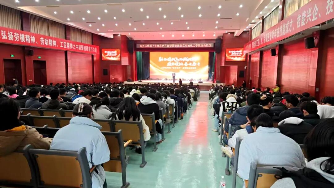 2025年11月11日,由我校马克思主义学院参与承办的大兴区残联“生命之声”宣讲团进校园活动在房山校区成功举行。本次活动以“弘扬自强与助残精神,凝聚团结奋进力量”为主题,通过宣讲团成员感人至深的生命故事,为我校师生带来了一堂生动而深刻的思政课。大兴区残联理事长牟育著,副校长张泉利,马克思主义学院直属党支部书记刘颖、副院长黄小惠、思政课教师及2025级新生共千人参加了活动。