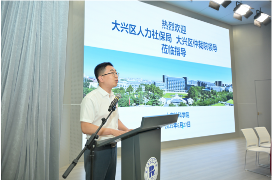 为充分发挥党建引领作用,深化校地合作、产教融合,6月27日,人文社科学院与大兴区人力社保局、劳动人事争议仲裁院举行“汲取榜样力量,启航青春梦想”主题党日活动暨合作共建签约仪式。大兴区人力社保局党组副书记、副局长、机关党委书记郑占峰,区人力社保局劳动关系党支部书记、仲裁院院长李慧茁,仲裁院副院长张国华及人力社保局劳动关系党支部党员;北京石油化工学院发展规划处处长、对外合作联络处处长何晓红,教务处处长王腾,人文社科学院党委书记王荣霞、党委副书记兼副院长郑影、副院长李思琦,以及人力资源管理系全体教师、学生党员及入党积极分子,人资系2023级本科生等140余人共同参加。