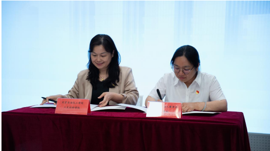 合作共建签约仪式在学校清源剧场举行,人文社科学院副院长李思琦主持。王荣霞、郑占峰代表双方分别致辞。王荣霞在致辞中对大兴区人力社保局、大兴区仲裁院长期以来给予学院发展的关心与支持表示衷心感谢。她指出,双方开展合作共建,是积极探索党建引领事业发展新路径的关键举措。通过合作,双方将凝聚思想共识、打破资源壁垒,实现资源共享与优势互补,推动党建与业务工作深度融合。郑占峰在致辞中肯定已有合作成效,祝贺此次签约,并称此次合作是校地双方优势互补、互利共赢的生动实践。