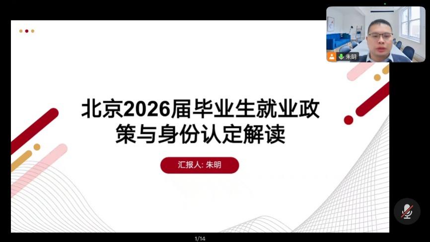 会上,就业辅导员朱明老师结合当前宏观经济形势与人文社科类专业特点,分析了2026届毕业生面临的就业机遇与挑战,并对国家及地方出台的相关就业促进政策、三支一扶、应征入伍、升学深造等多元发展路径进行了系统介绍,对应届生身份、本校二学位报考、就业信息获取渠道、就业材料提交等具体问题给予了详细解答和指导建议。