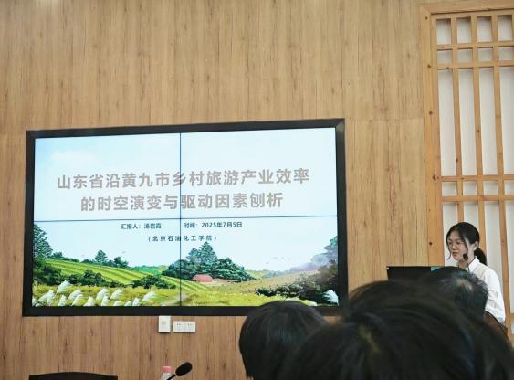 年会设置三个平行论坛,分别围绕“市场机制、环境法规与低碳转型”“绿色转型路径与产业低碳化”“生态补偿与生态产品价值实现”三大主题展开。在“生态补偿和生态产品价值实现”分论坛上,李向前副教授作为论坛点评人,对各位学者的汇报内容进行点评、提出改进建议。汤岩霞同学就其研究课题“山东省沿黄九市乡村旅游效率及其影响因素研究”作了精彩汇报,并与现场专家学者进行了深入交流,其阶段性研究成果获得了积极评价。