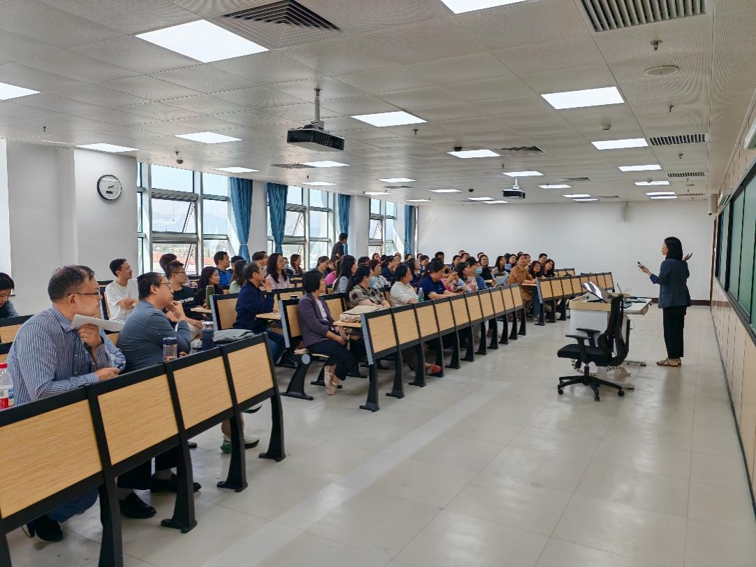 近日,为确保 2025 级房山校区本科生教学活动平稳启动,帮助教师熟练掌握新改造教室的智慧教学设备,学校教务处在房山校区第一教学楼 710 教室开展多媒体设备使用方法培训,来自我校各教学院(部)的共45名任课教师参加培训。