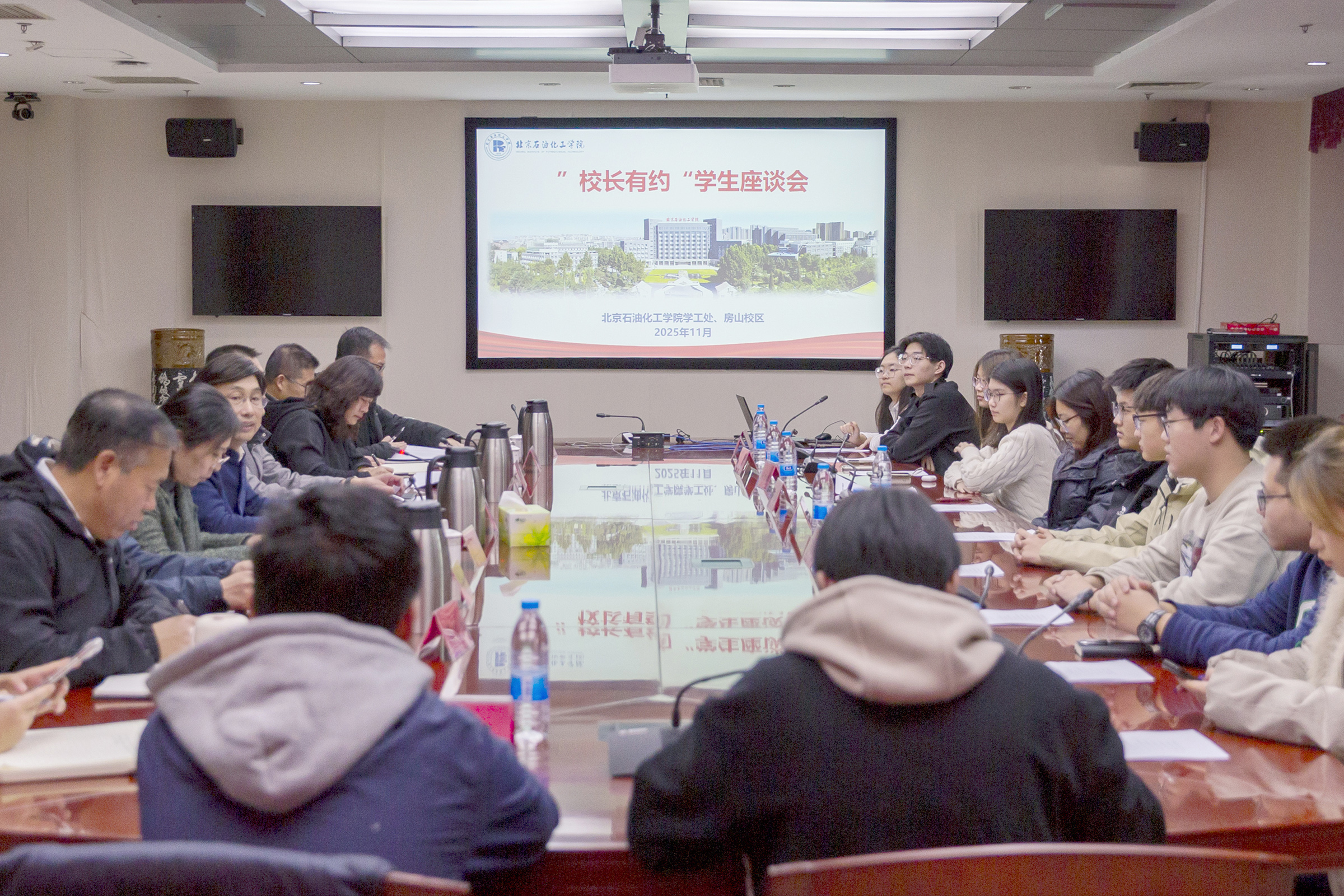 近日,北京石油化工学院第二十一期校长有约学生座谈会在房山校区成功举办。党委副书记、院长罗学科,学生工作处处长孔惠及房山校区班子成员与机械学院、信息学院、人文学院、预科班的学生代表面对面交流,聚焦校园服务痛点,现场回应诉求。座谈会由房山校区党委书记孙大庆主持。