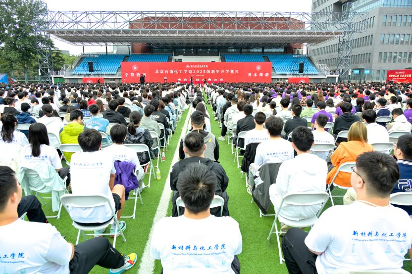 9月19日上午,北京石油化工学院2025级4000余名本科生、研究生、留学生新生开学典礼首次在清源、房山两校区举行。