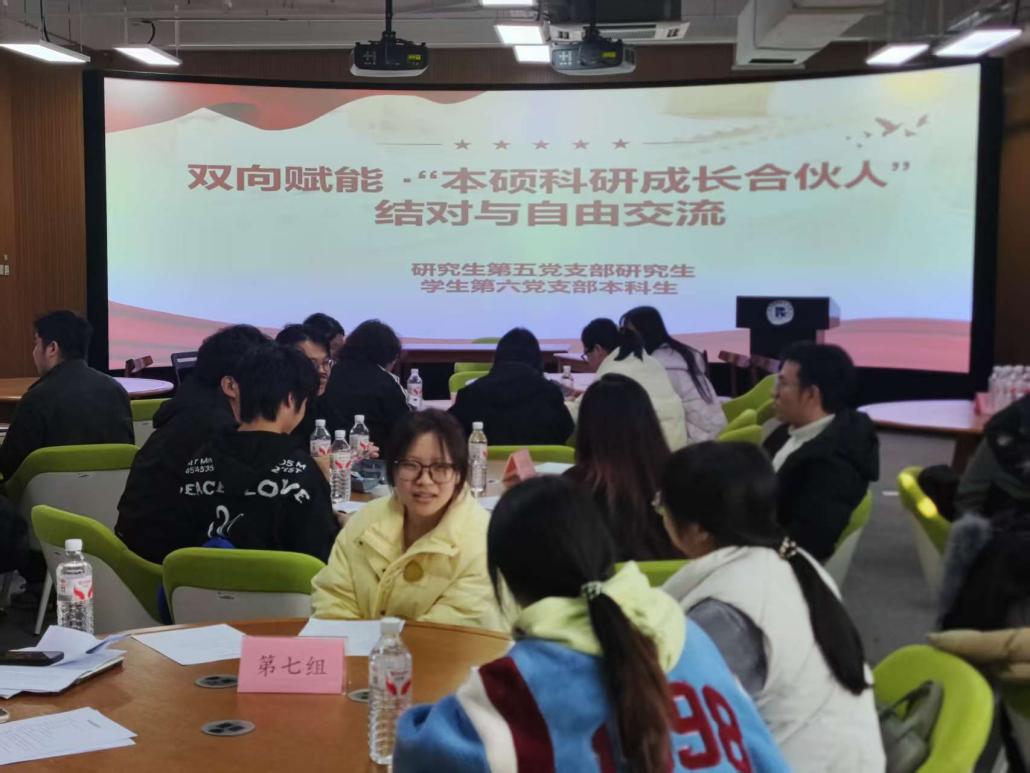 在“本硕科研成长合伙人”结对环节,本科生党支部书记张子豪老师主持并提出倡议,希望本研同学以本次活动为起点,在URT等项目中共建团队、在科研实践中深化交流,建立常态化互助机制。现场同学积极响应,围绕课题选择、实验设计、学业规划等展开热烈讨论,搭建起本研贯通的科研成长平台。