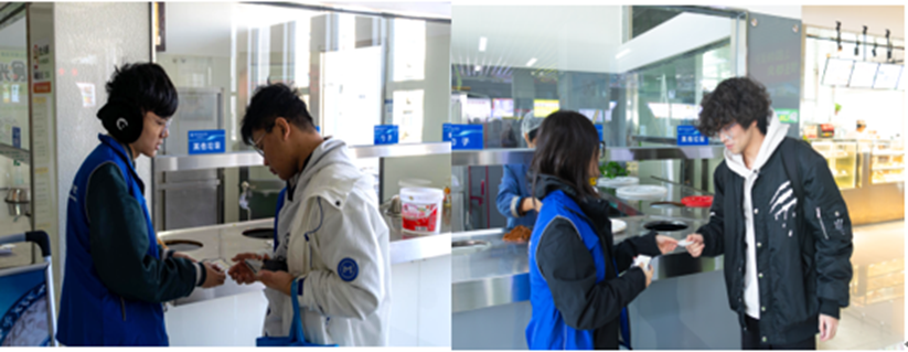 光盘行动在清源校区青缘餐厅一、二、三楼学生食堂和四楼教工食堂餐具回收处设立了志愿者岗位,每天午餐和晚餐时间志愿者在各层餐具回收处执勤,不仅维持就餐秩序,更向践行“光盘”的师生发放“光荣志士荣誉卡”及活动奖励。为持续激励师生,活动还设立了累计奖励机制,对于每次光盘的师生发送三等奖,对于连续“光盘”六次、十次的师生给予额外奖励,为更好宣传活动,让更多师生参与光盘行动中来,此次活动自10月26日起开展了“节约粮食:从舌尖开始,在心中扎根”朋友圈集赞活动,全校师生均可以通过转发光盘行动活动推文推送至朋友圈,此举旨在让“节约粮食:从舌尖开始,在心中扎根”的理念深入人心,有效提升全体师生参与积极性。