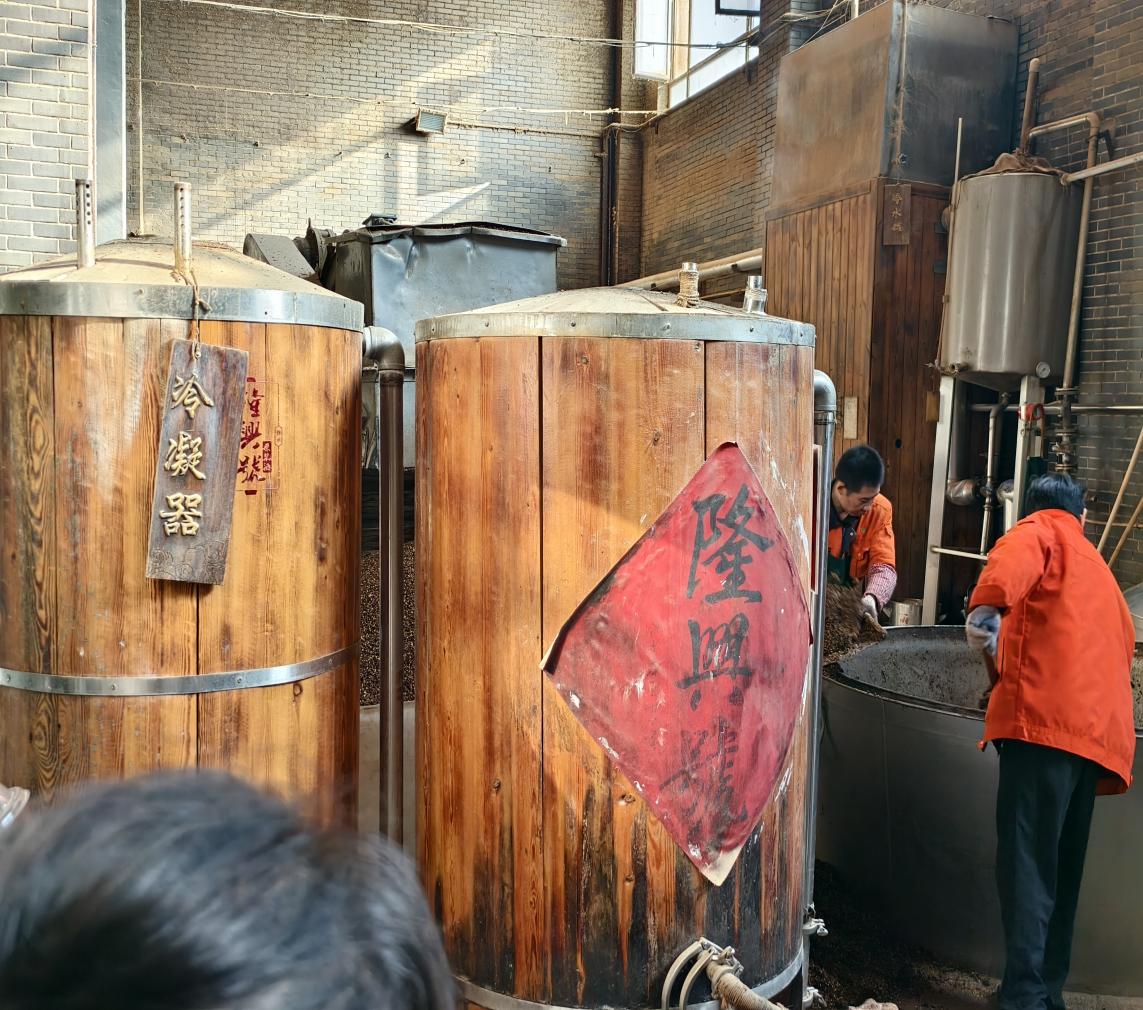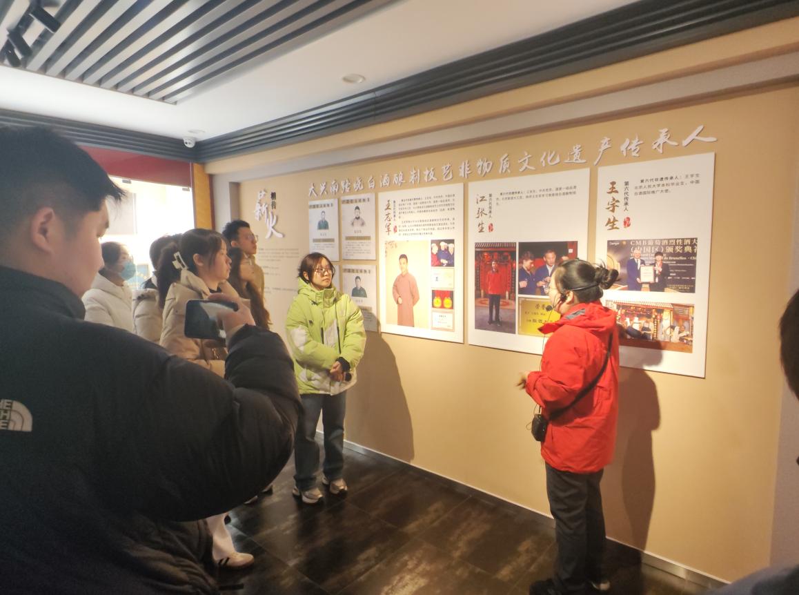 活动第一站设在大兴南路烧酒博物馆。作为融合非遗技艺与现代生物酿造技术的工业实践基地,该馆为生物制药专业的同学们提供了生动的教学场景。在讲解员的带领下,同学们了解了白酒的起源与分类、非物质文化遗产的传承,参观体验了古法酿酒技艺。
