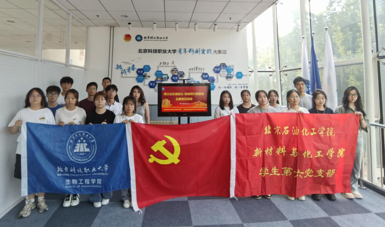 为深入学习贯彻党的二十大及二十届三中全会精神,推动党建与专业实践深度融合,促进校际交流合作,新材料与化工学院学生第六党支部与北京科技职业大学生物工程学院学生党支部联合开展系列主题党日活动。在生产实习活动间隙,两支部围绕"党建引领,专业赋能"主题,通过实践基地参观、座谈会等形式,搭建跨校党建共建平台。双方就学生党支部建设、科研竞赛经验交流等方面展开深入交流,有效促进了党建与专业教育的有机融合。