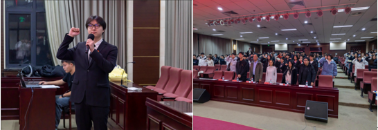 学生团委副书记关禹洋带领新老团员共同宣誓。