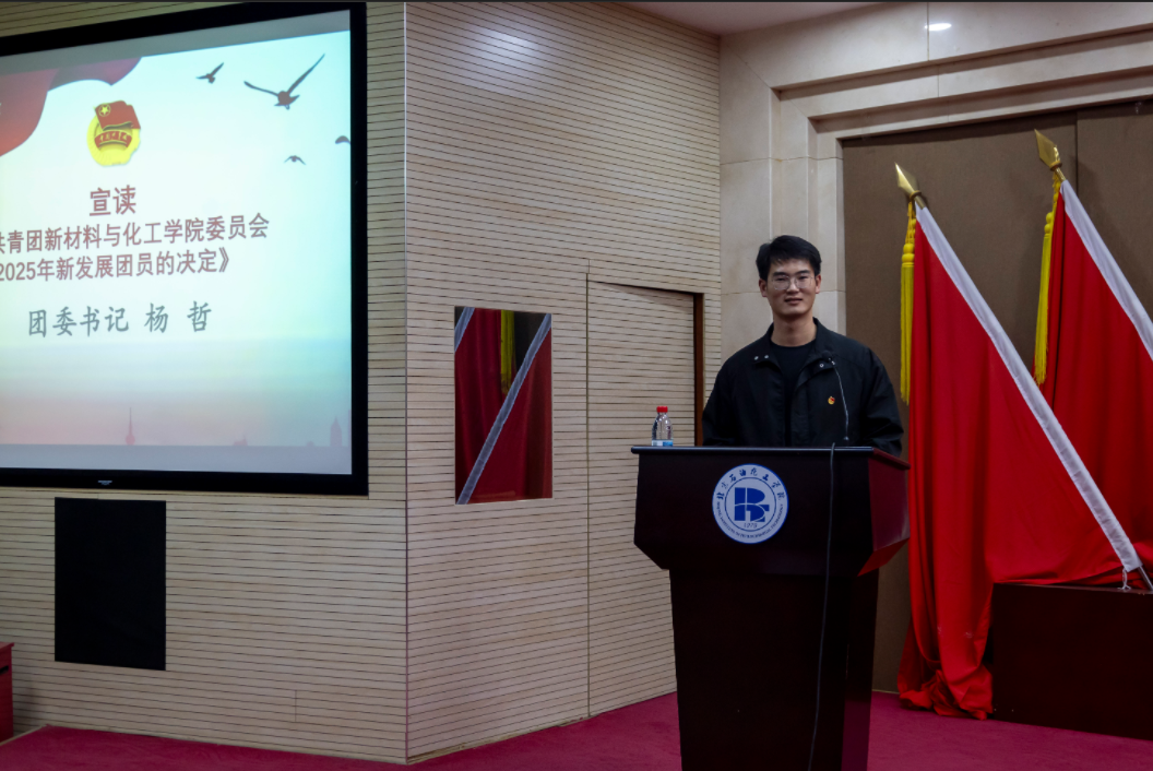团委书记杨哲老师宣读《共青团新材料与化工学院委员会2025年新发展团员的决定》。