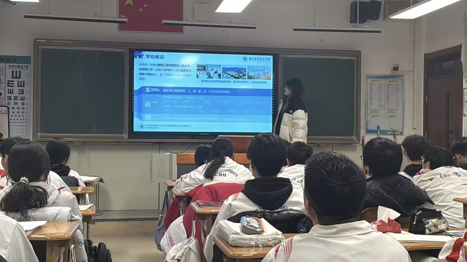 作为从这所高中走出来的学姐,我们特别想把母校北京石油化工学院的真实情况分享给学弟学妹们。一方面是想全面介绍学校的办学特色、专业优势和校园生活,让大家知道除了热门名校,还有这样一所“工程师摇篮”值得关注;另一方面也是想精准传递2025年的招生政策、录取分数这些实用信息,帮大家在志愿填报时少走弯路;更希望通过我们的亲身经历,让大家感受到北石化的魅力,吸引更多优秀同学加入我们这个大家庭。与学弟学妹们互动答疑时,他们对专业选择、校园生活的好奇与追问,更让我感受到此次宣讲的价值——我们不仅是学校的代言人,更是传承成长力量的纽带。这不仅是完成一项实践任务,更是对母校培养的一种情感回馈,是对“家乡”教育脉络的一种自觉接续。它让我明白,个人的成长从来都不是孤立的,它根植于过往的土壤,也应当在适当的时候,为后来者提供一片荫凉。未来,我们会继续当好北石化的“代言人”,持续关注学弟学妹们的报考需求,及时分享最新的招生信息。也真心希望在2026年的秋天,能在北石化的校园里见到更多熟悉的身影,和大家一起在这所“工程师摇篮”里,书写属于我们的“京彩‘石’光”!