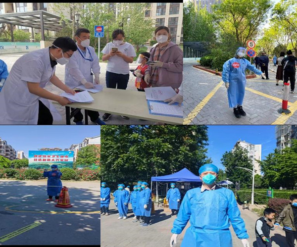 在校外,图书馆直属党支部党员干部不仅自己主动配合全员核酸筛查,带头做好自身安全防护,坚持戴口罩,不聚集、不扎堆、不聚餐,为亲友和身边周围群众树标杆、做榜样;还走出家门,积极加入社区抗疫一线志愿服务队伍,全力配合做好疫情防控工作,主动站在抗“疫”最前列、冲在第一线。
