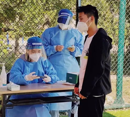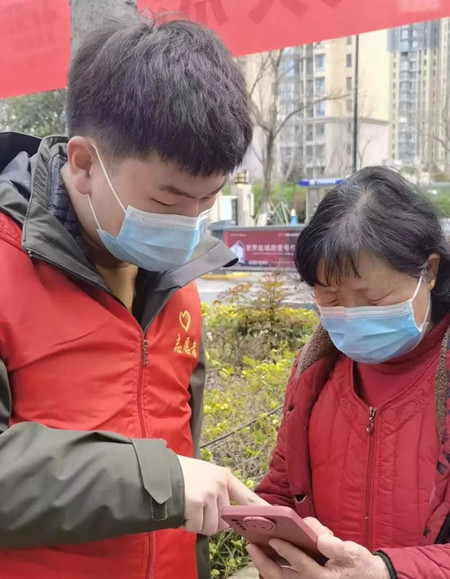 工作信息:援于:浙江省杭州市萧山区郁金香岸社区,主要负责维持核酸检测现场秩序,帮助老人操作系统。