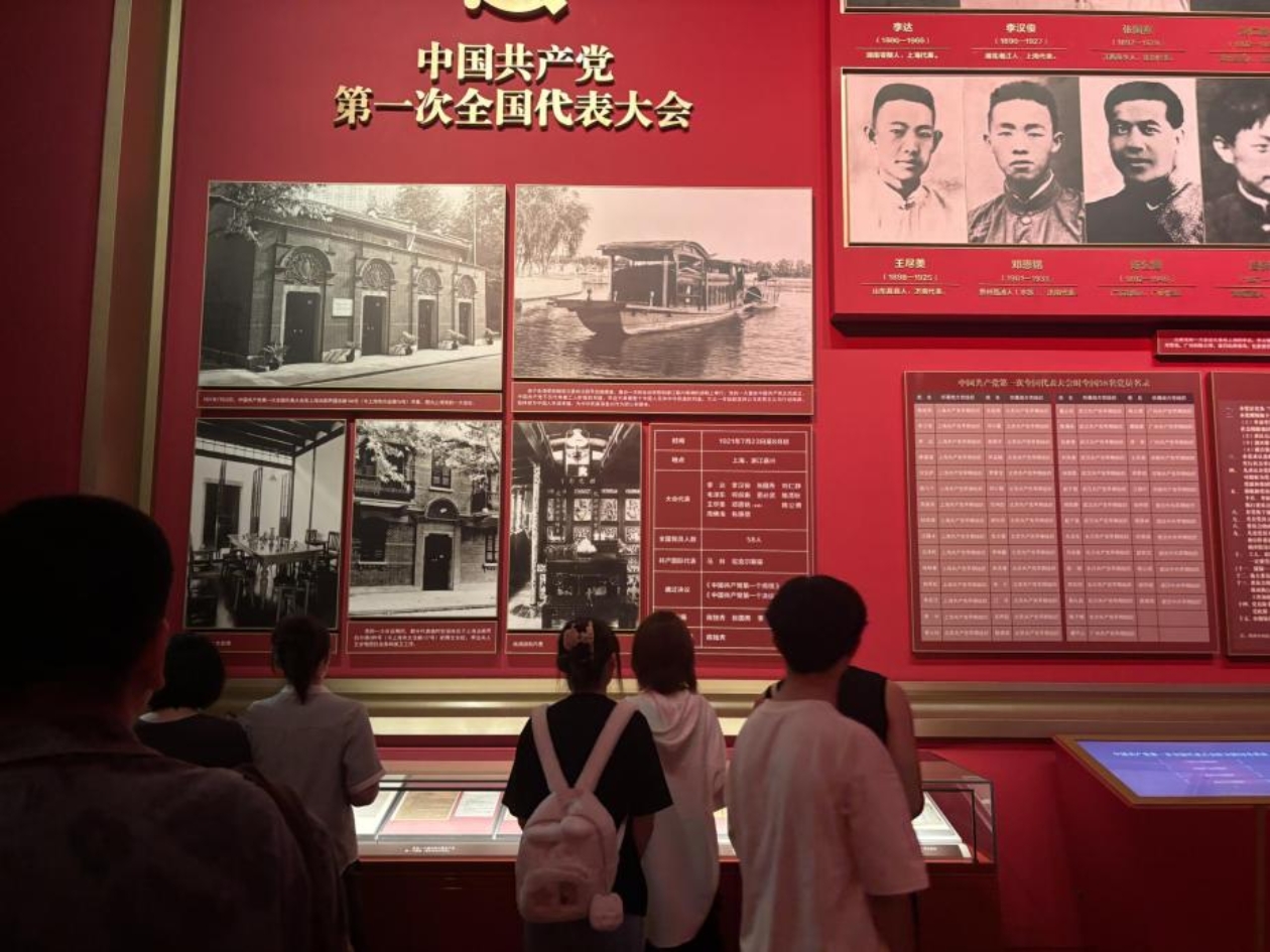 步入馆内,大家被众多珍贵史料包围。在讲解中共一大的展区,气氛庄严肃穆,仿佛能看到1921年7月,13位代表围坐讨论的身影。彼时,山河破碎,中国共产党在风雨中诞生,为这片古老大地带来曙光。中共一大的召开,是开天辟地的大事变,它宣告了中国共产党的正式成立,犹如在沉沉黑夜中点亮一盏明灯,照亮中国革命的前行道路。