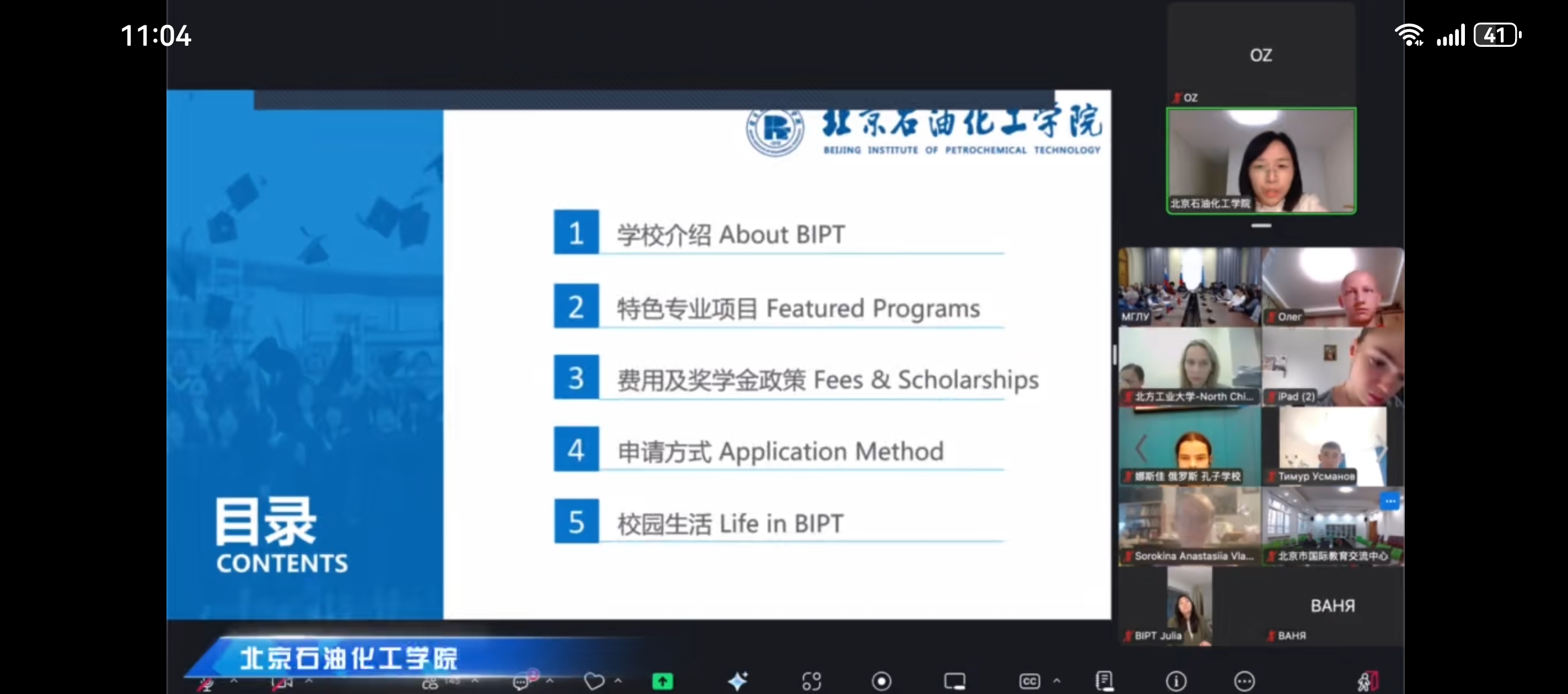 10月26日下午,由北京市教育委员会、北京市国际教育交流中心、汉考国际联合主办,莫斯科国立语言大学孔子学院承办的2025年“留学北京”(俄罗斯专场)线上专题教育展在莫斯科国立语言大学成功举办。北京石油化工学院与北京大学、北京第二外国语大学、北京建筑大学等中国知名高校一同应邀参展,共同向俄罗斯学子和教育机构展现北京高等教育的独特魅力。
