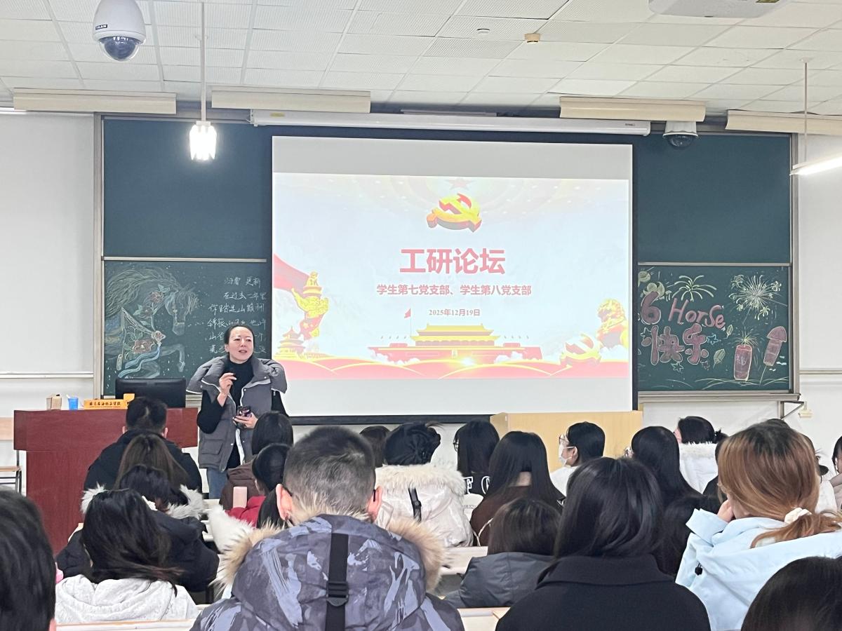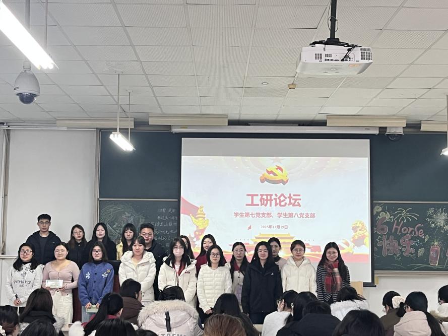 2025年12月19日上午,经济管理学院学生第七党支部、学生第八党支部(研究生党支部)于康507如期举行第三十一期“工研论坛”。本期论坛由审研241杨荣荣、审研241朱梦淋和审研241田雨辰主讲,经济管理学院学生第七党支部书记张丽老师、第八党支部书记杜镇伟老师出席此次论坛,经济管理学院全体研究生同学参加了论坛。