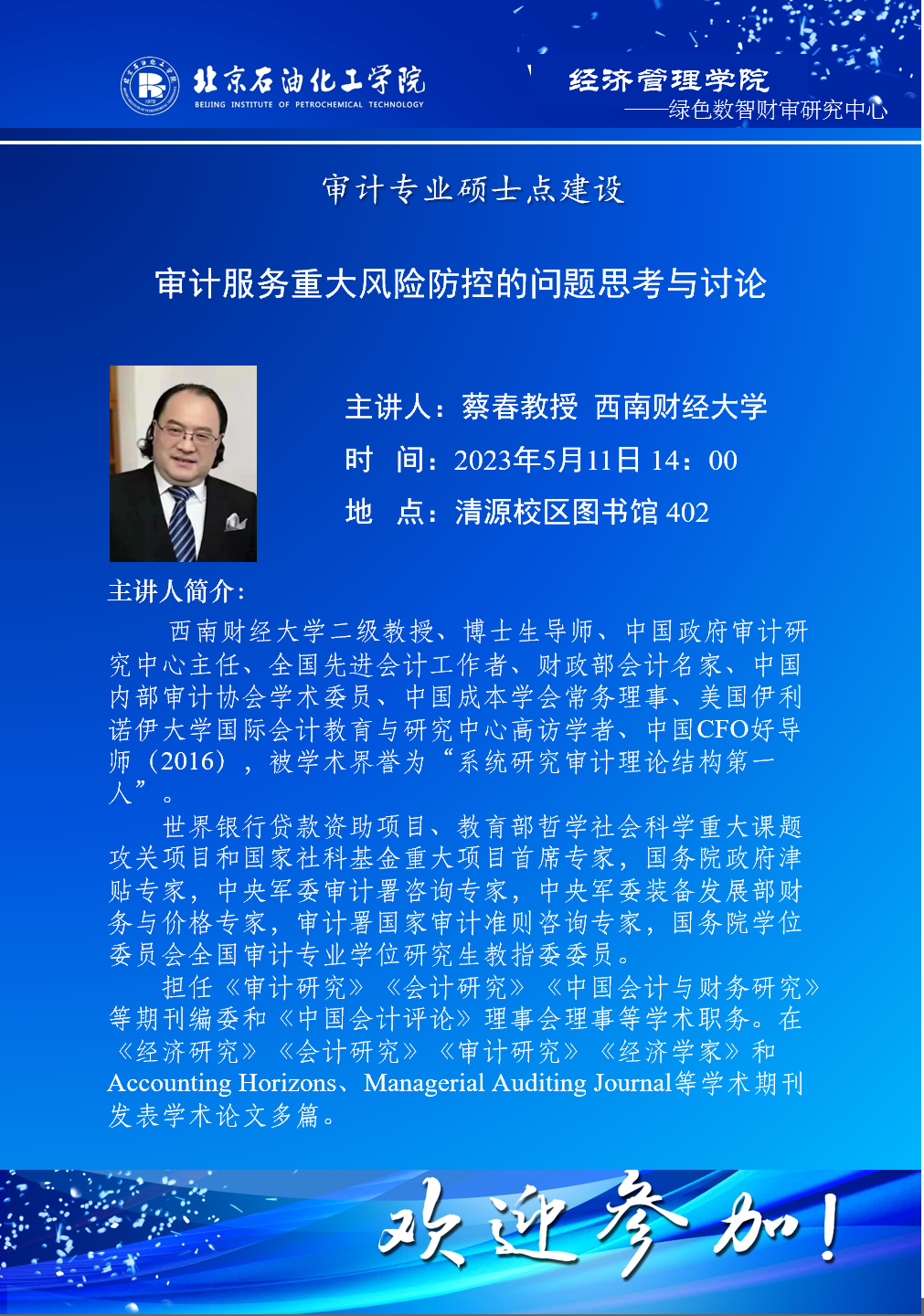 学术讲座通知:审计服务重大风险防控的问题思考与讨论