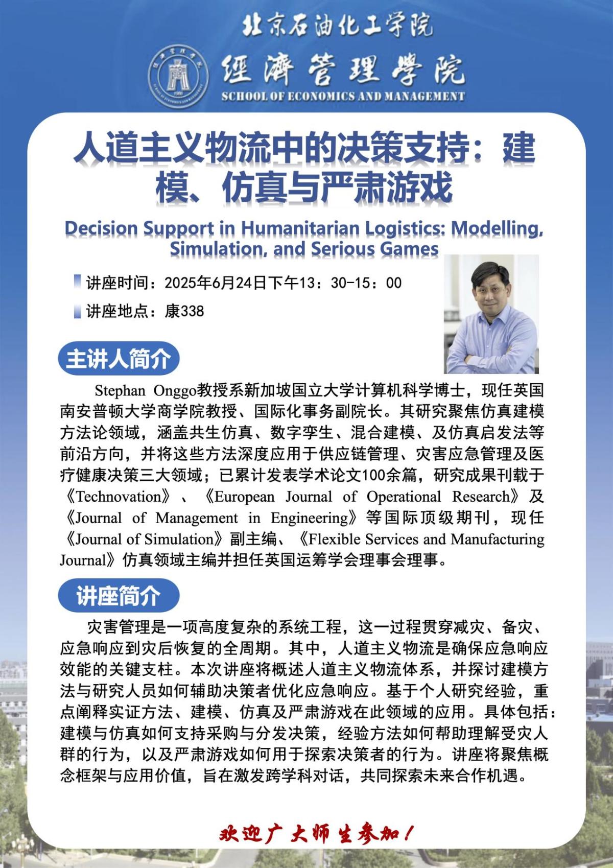 讲座通知:人道主义物流中的决策支持:建模、仿真与严肃游戏