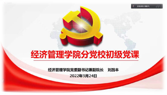为了让同学们尽快适应大学生活,明确奋斗的目标,帮助具有入党意愿的学生们学习入党流程,树立正确的入党动机,了解学习党支部情况。2022924日,经济管理学院举办2022级新生初级党课,本次党课由经济管理学院党委副书记刘践丰老师主讲。