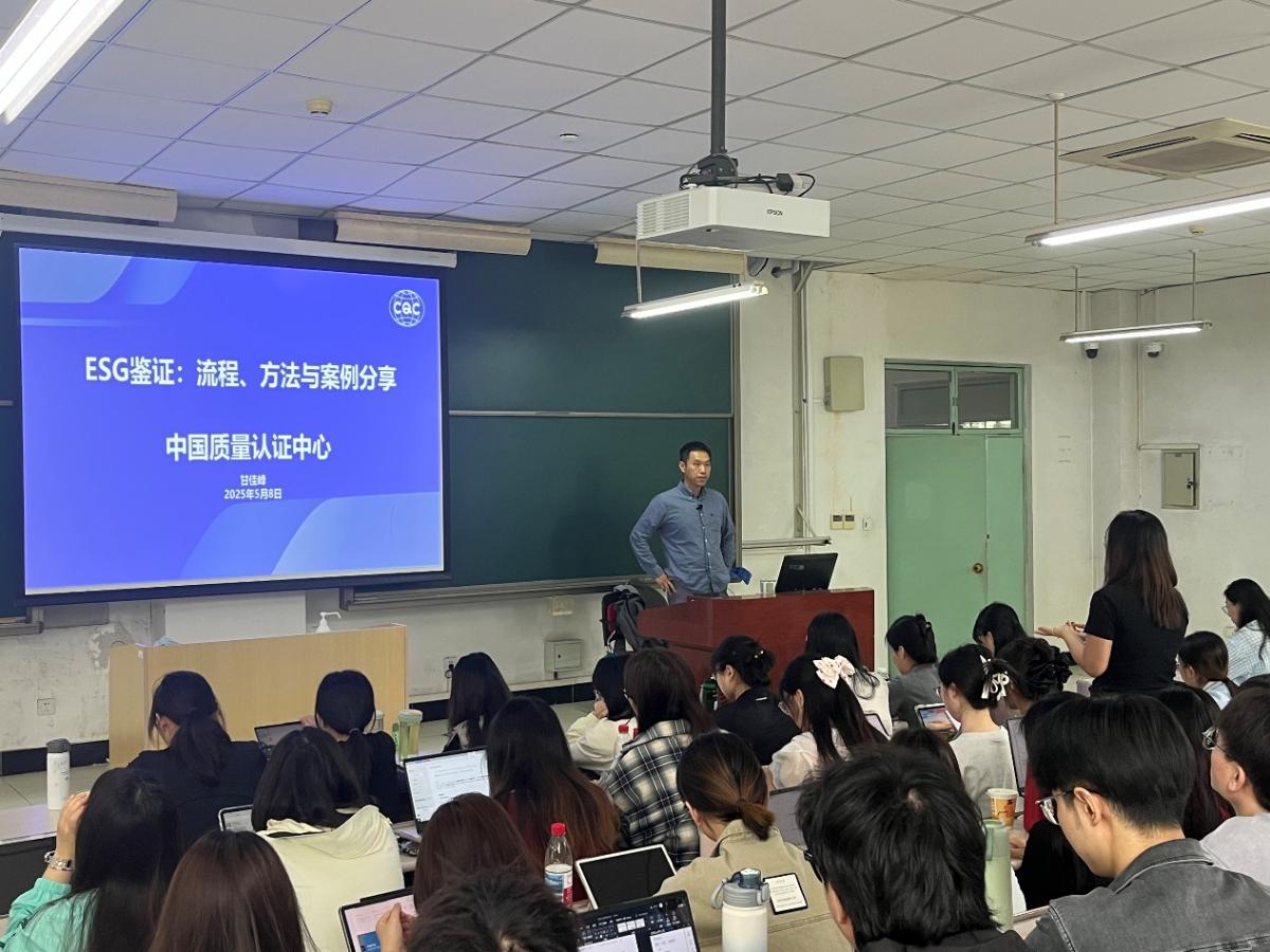 2025年5月8日,经济管理学院邀请中国质量认证中心ESG业务主管、国际审计与鉴证准则理事会ISSA 5000技术实施组成员甘佳峰就“ESG鉴证流程:流程、方法与案例分享”进行专题讲座。2024级审计专硕全体学生以及部分硕士生导师老师参与了本次活动。