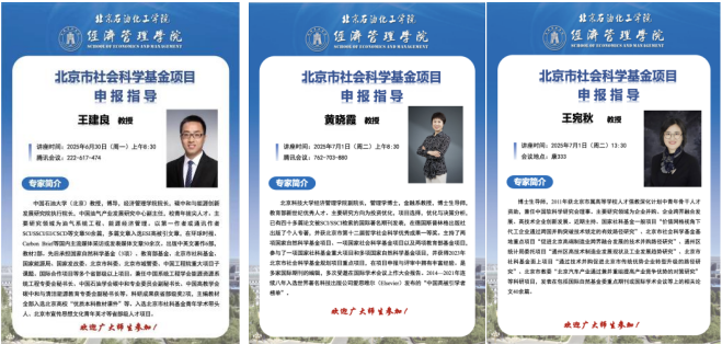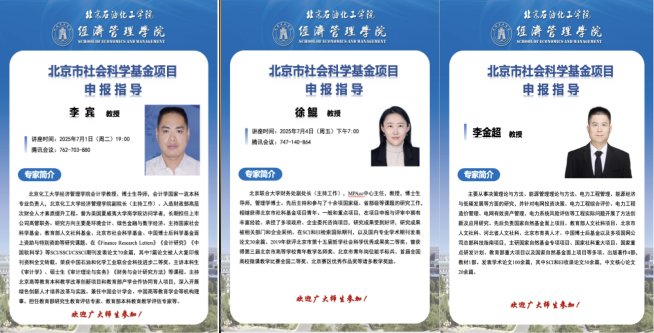 为进一步提升学院教师科研项目申报质量,搭建高水平学术交流平台,2025年6月28日至7月4日,经济管理学院举办2025年度北京市社会科学基金项目申报系列指导会,系列指导会采用线上线下相结合的模式。
