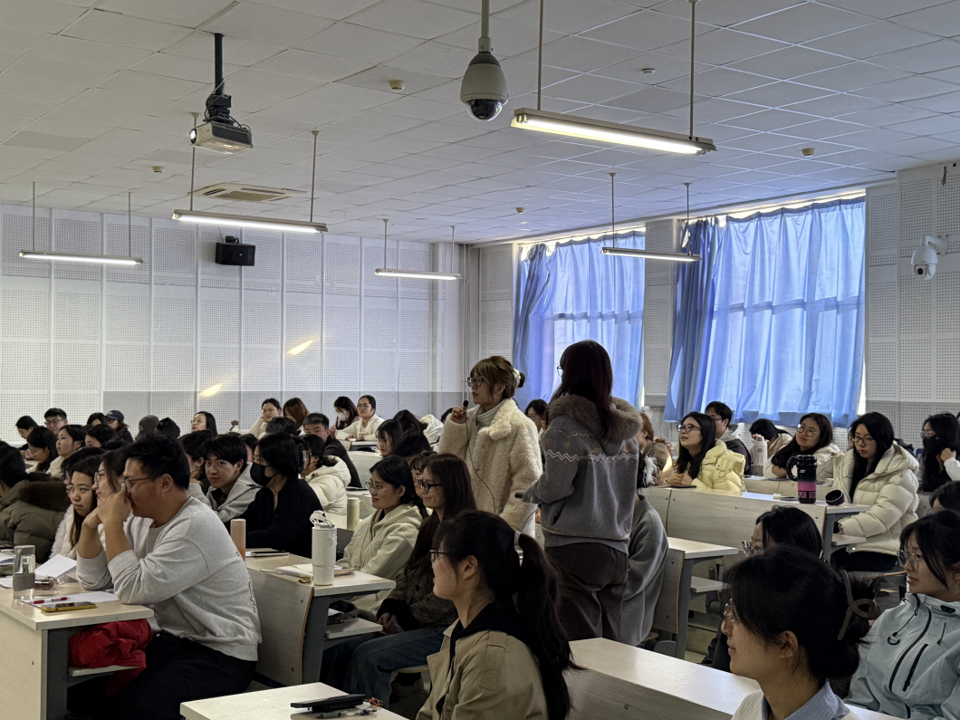 随后,她组织了开展了形式多样的互动活动:“随机提问”考验临场反应,“唱歌接龙”活跃现场氛围,“身不由己”比划猜词增强团队协作。现场气氛轻松热烈,同学们在互动中加深交流、增进友谊,进一步提升了集体凝聚力。
