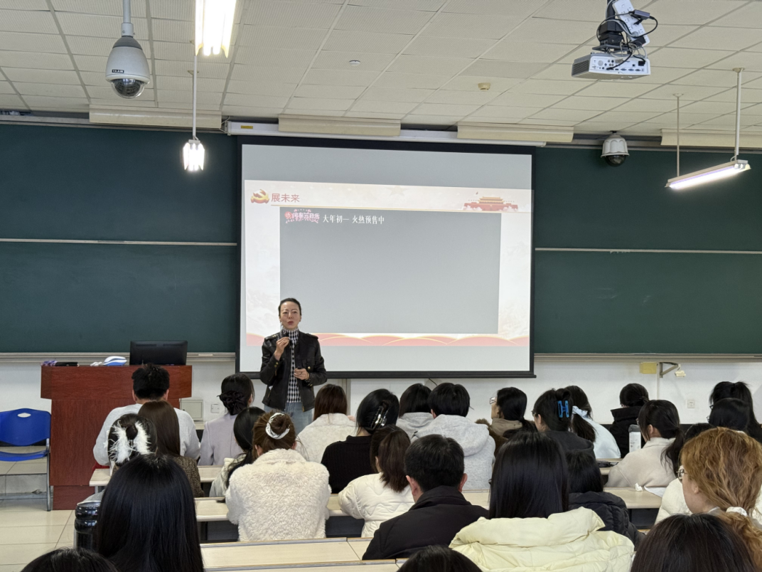 第三环节“展未来”由韩婧茹同学主讲。她结合两会提出的“一体推进教育科技人才改革”战略,阐述了新时代研究生应如何将个人理想融入国家发展。